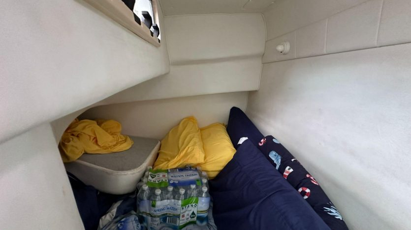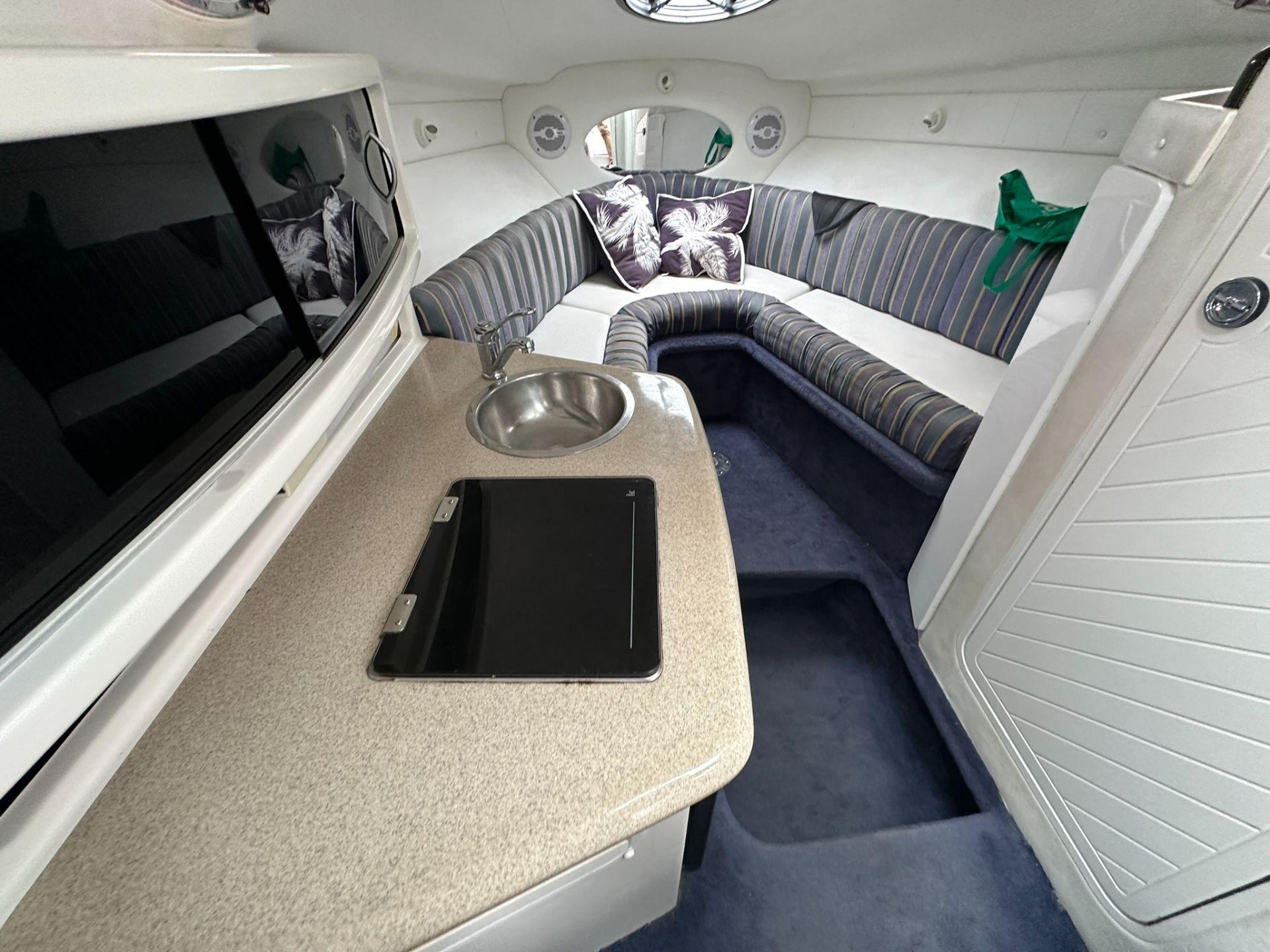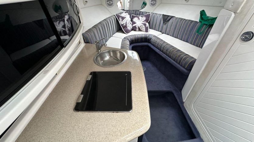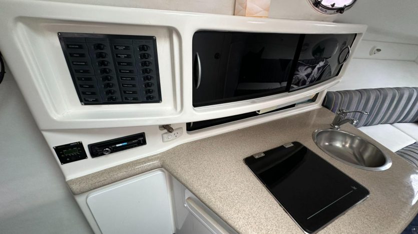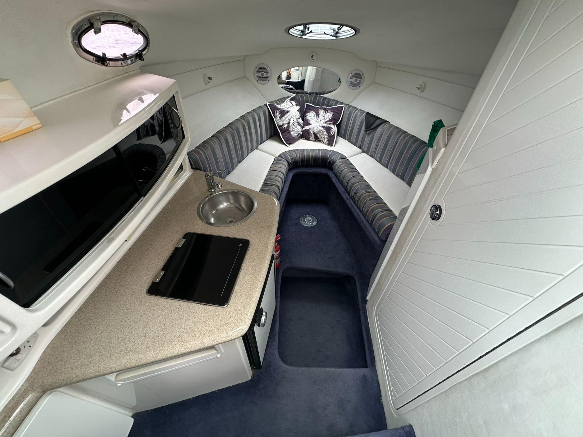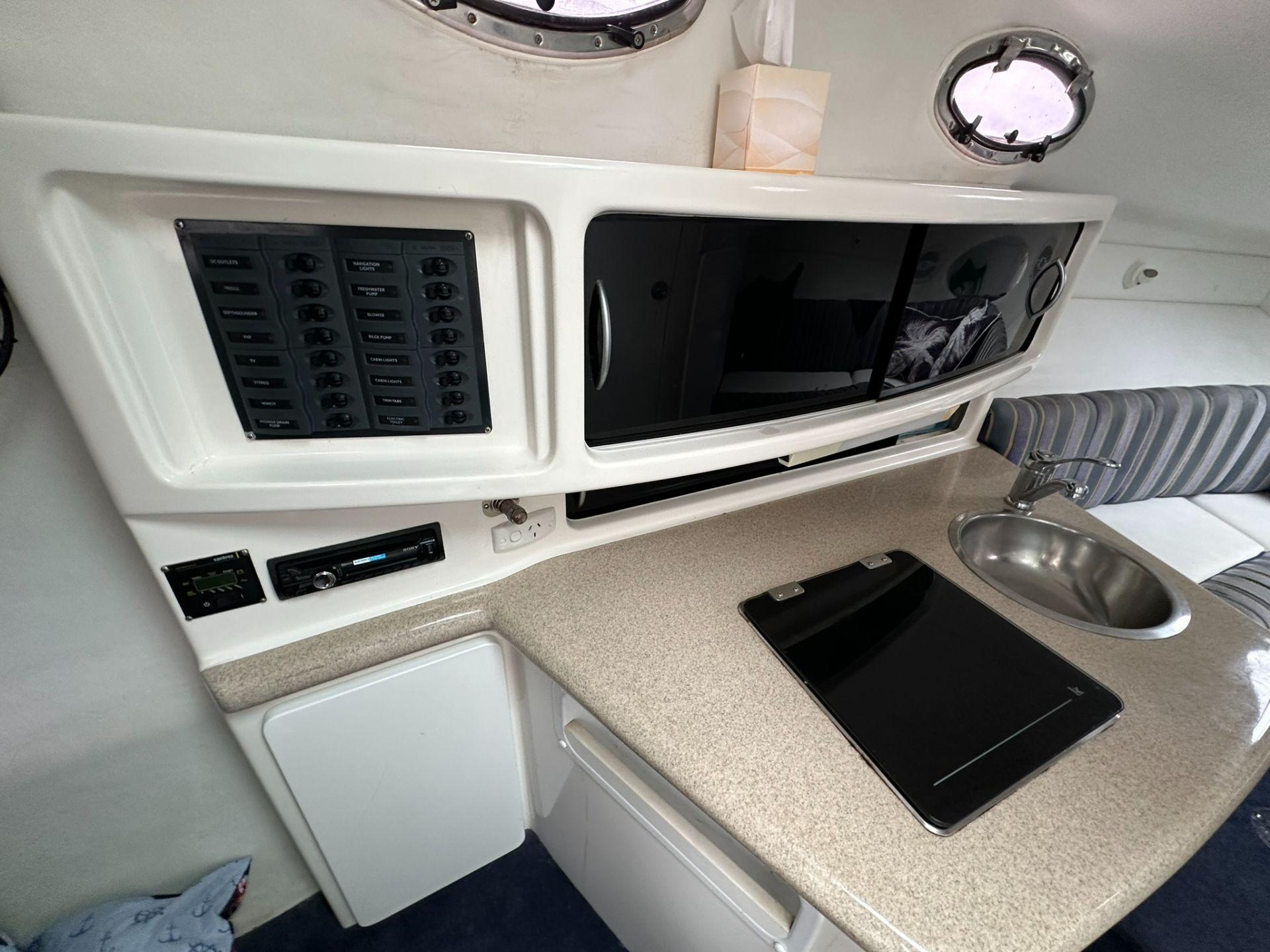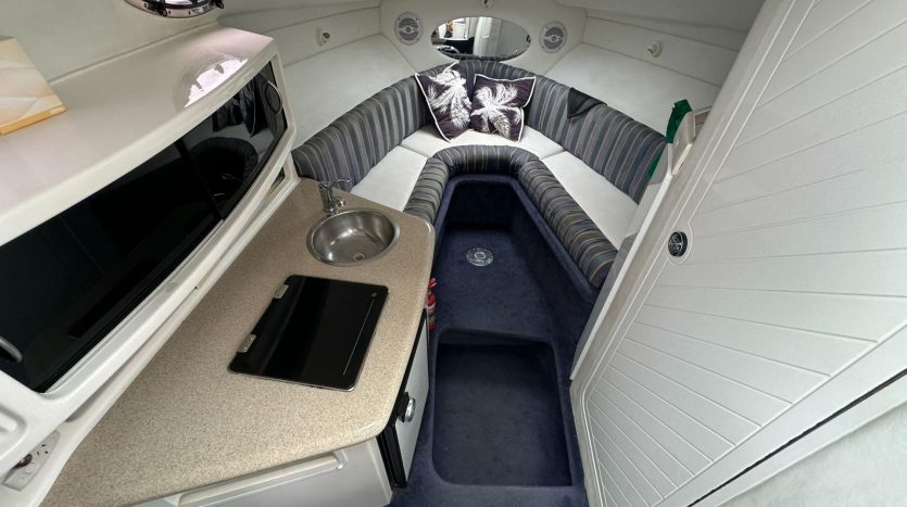 Oh, and the sleeping situation? Two double berths that promise a cozy retreat for you and three buddies after a day on the water. And the galley? Ready for your impromptu overnight or weekend escape with a fridge, cooktop, and microwave. This boat's got you covered for the ultimate cruising chill vibes!