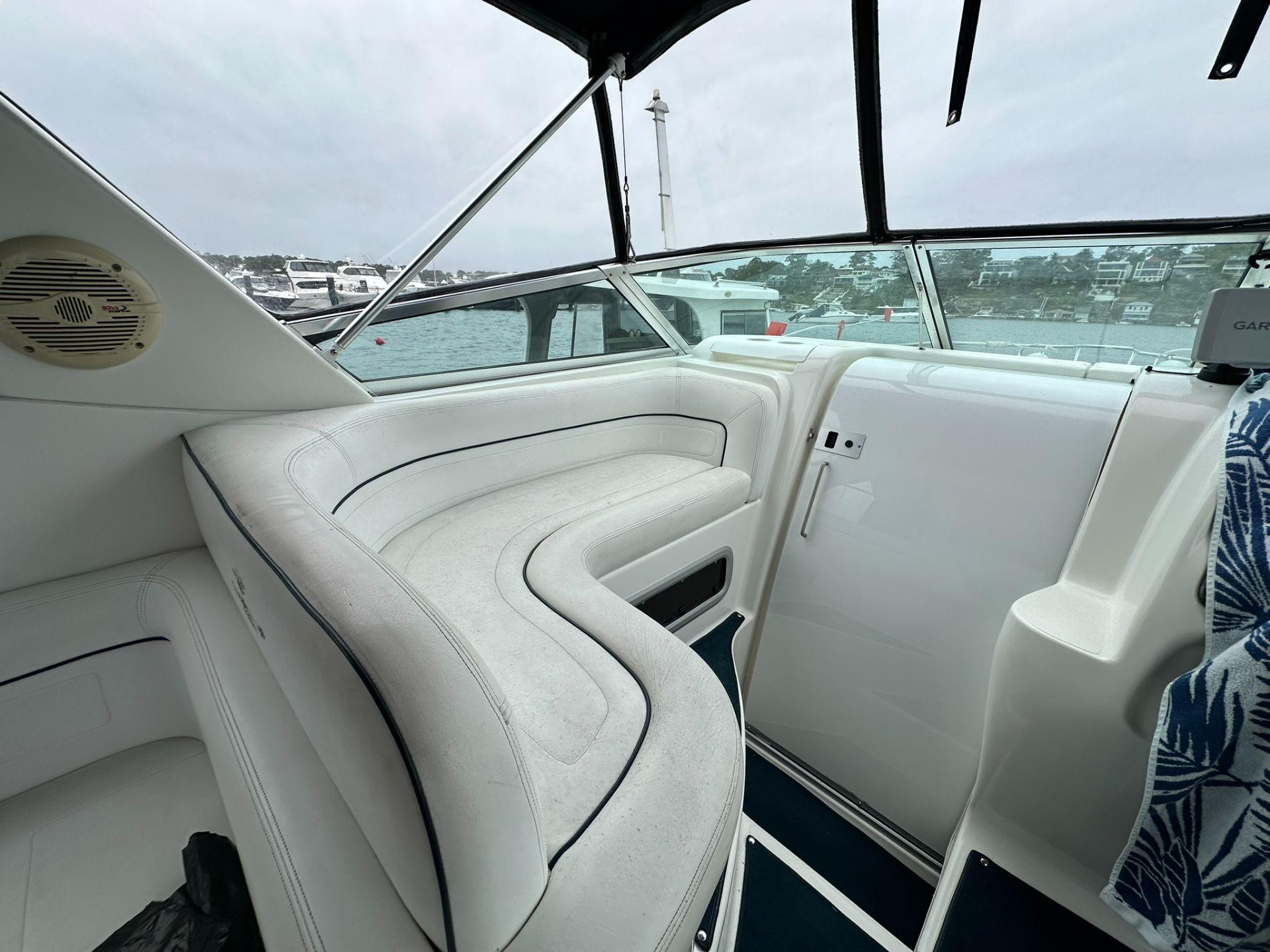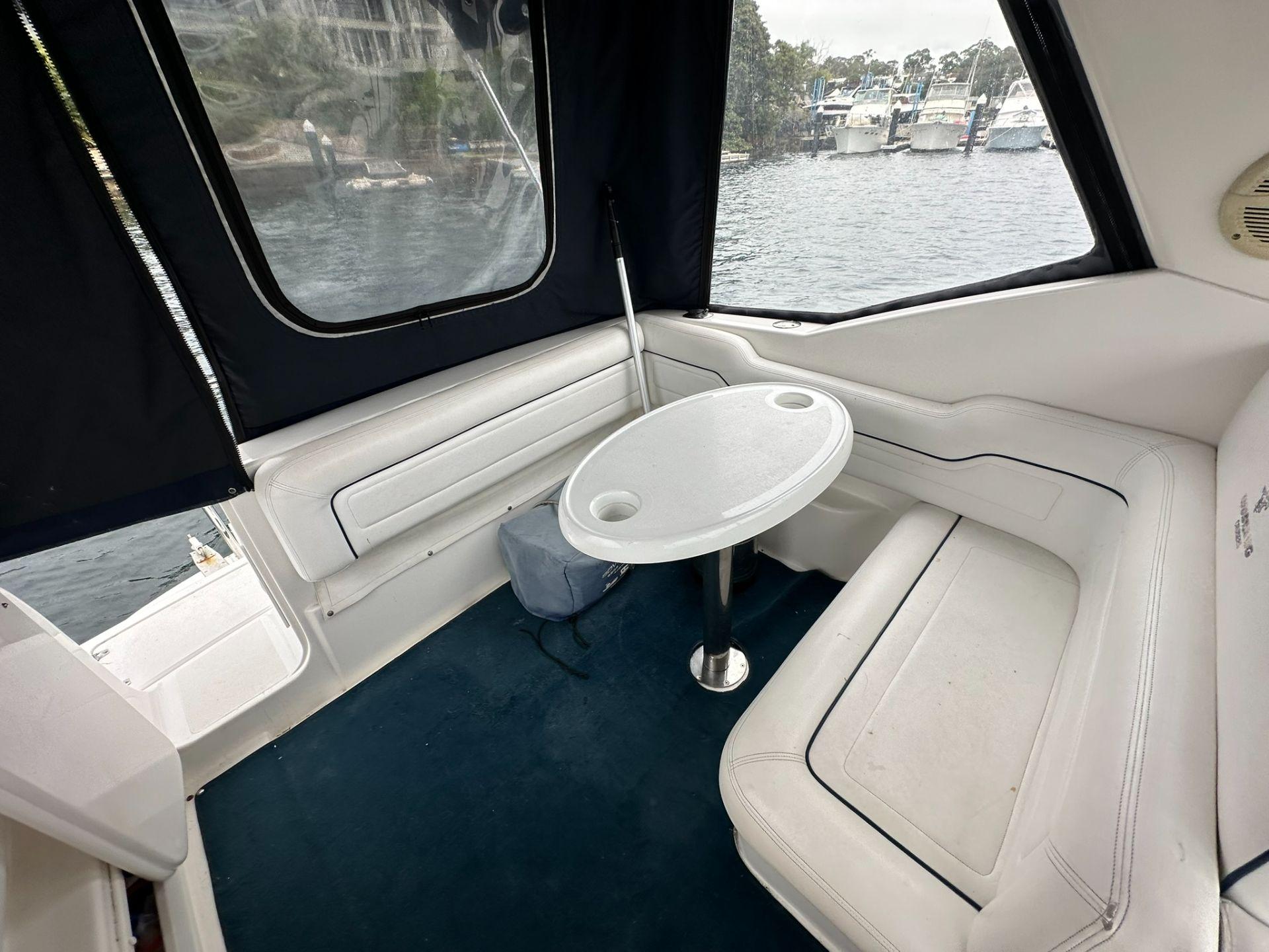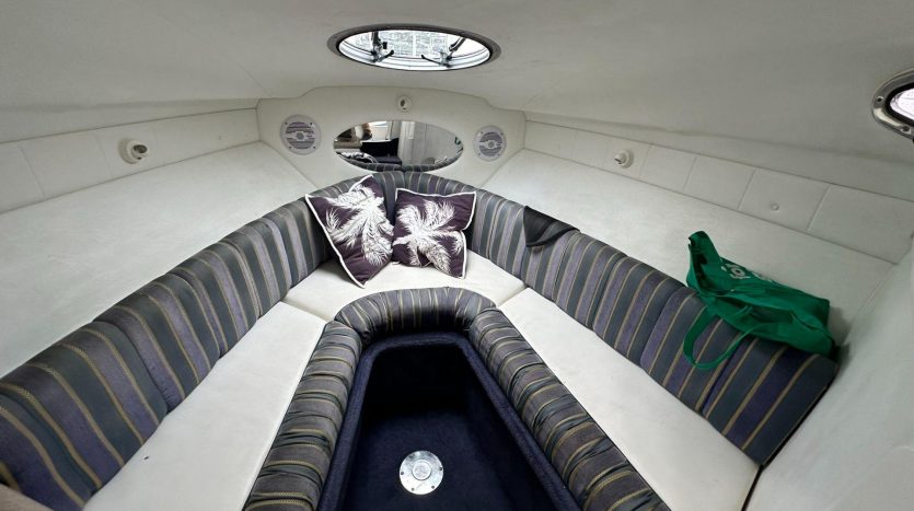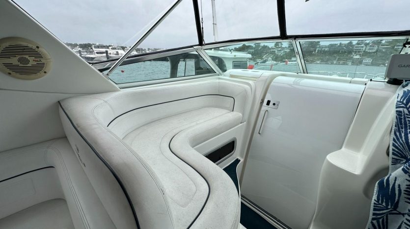 Let's talk about that swim platform – it's like a big, sturdy hug from the sea, setting the vibe for some serious water fun. Slide into the spacious cockpit, which is basically a social paradise with killer panoramic views. They've decked it out with recent upgrades to clears and covers, so you're all set for a comfy hangout, rain or shine. It's basically the heart of the onboard experience.