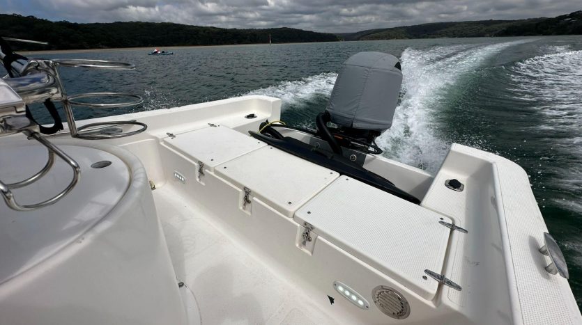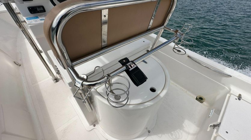 Powered by a meticulously maintained Yamaha engine with only 113 hours, this 2021 model boasts minimal use and achieves speeds of up to 21 knots. Equipped with premium features including blue squid lights, strip lights, a Fusion RA55 Stereo, Garmin Striker 5CV, T-top, and digital gauges, every detail enhances your experience on the water.