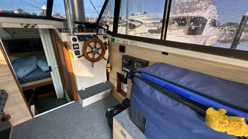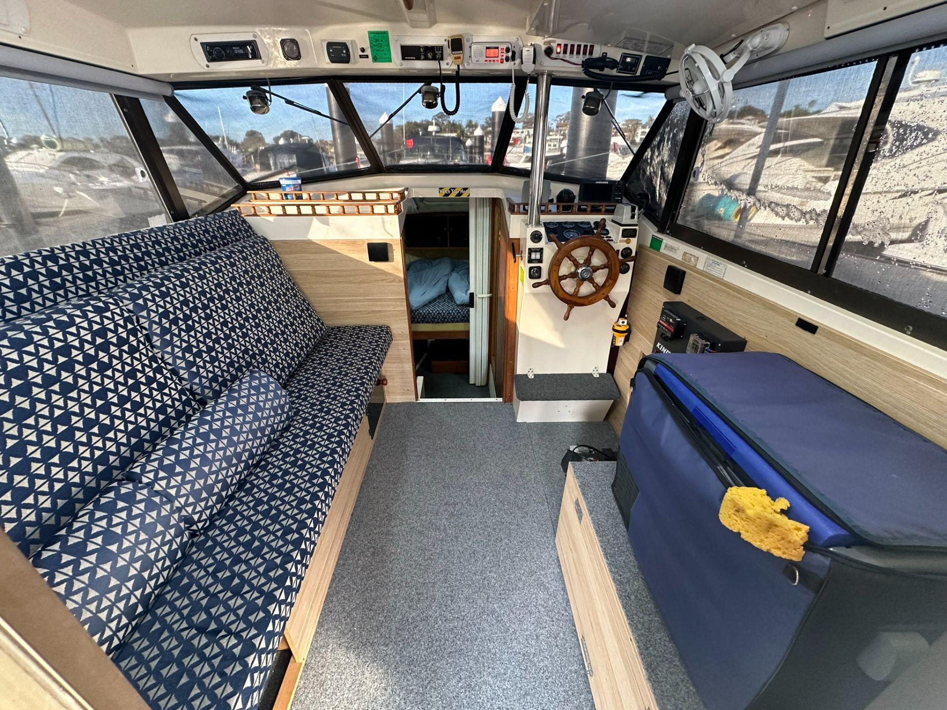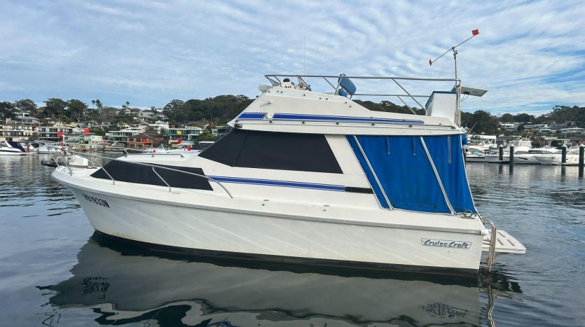 Discover the ultimate in comfort and versatility with this Australian-made Cruise Craft Executive 800 by Nichols Brothers. This 1986 model, a full-length flybridge version, offers an impressive blend of functionality and leisure, making it the ideal choice for family adventures or leisurely cruises.